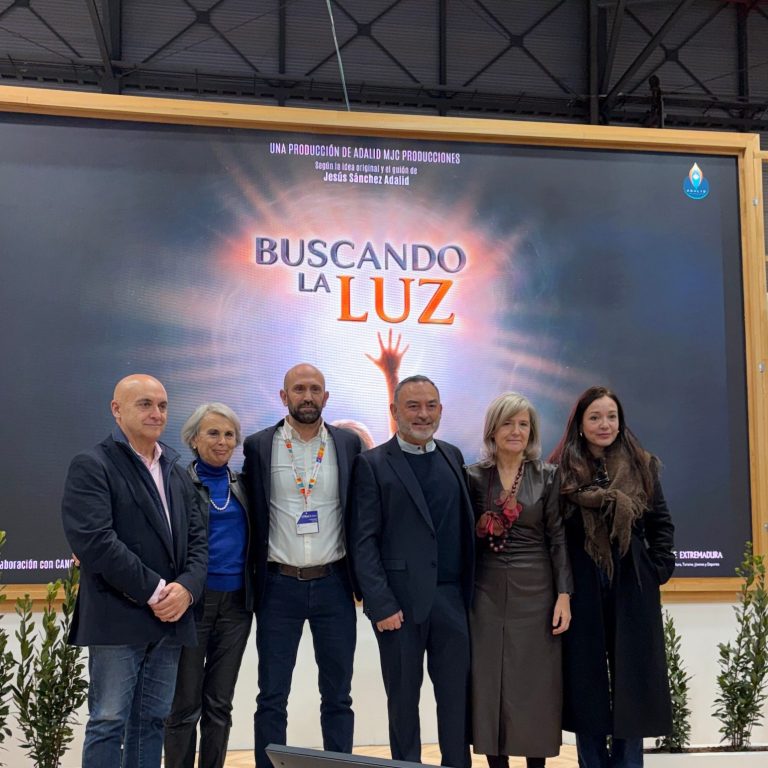 Victoria Bazaga Gazapo, Consejera de Cultura, Turismo, Jóvenes y Deportes; Carmen Sánchez Risco, Directora Gerente de la Fundación Extremeña de la Cultura; Xavier Melo, fundador y presidente ejecutivo de Fundación Icloby; Lujan Comas, anestesióloga e investigadora y Julio Bogeat, psicólogo acompañaron a Jesús Sánchez Adalid en la presentación de Buscando la Luz.